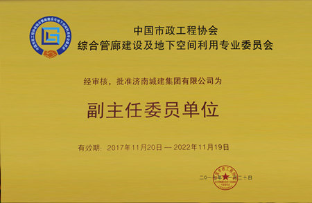 集团荣获中国市政工程协会综合管廊建设及地下空间使用专业委员会副主任委员单位声誉称呼
