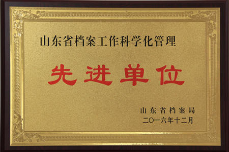 集团荣获山东省档案事情科学化治理先进单位声誉称呼