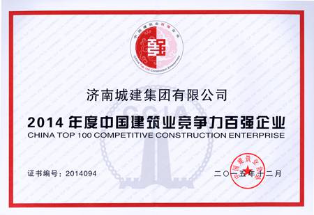 集团荣获2014年度中国修建业竞争力百强企业