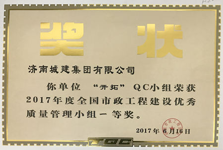 “开拓”QC小组荣获2017年度天下市政工程建设优异质量治理小组一等奖