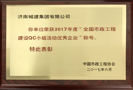 集团荣获2017年度“天下市政工程建设QC小组运动优异企业”称呼