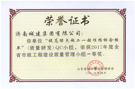 提高绿色施工一样平常项指标及格率(质量研发)QC小组获2017年度全省市政工程建设质量治理小组一等奖