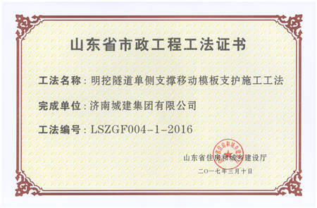 明挖隧道单侧支持移动模板支护施工工法LSZGF004-1-2016