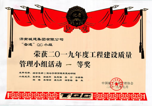 集团“奋进”QC小组荣获“2019年度工程建设质量治理小组一等奖”