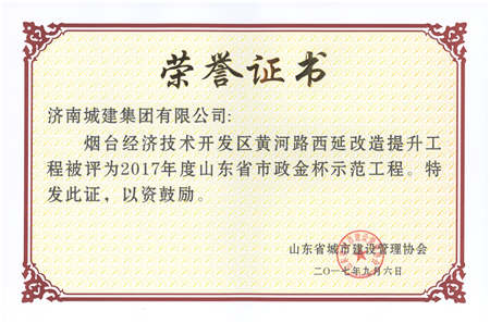 烟台经济开发区黄河路西延刷新提升工程被评为2017年度年度山东省市政金杯树模工程