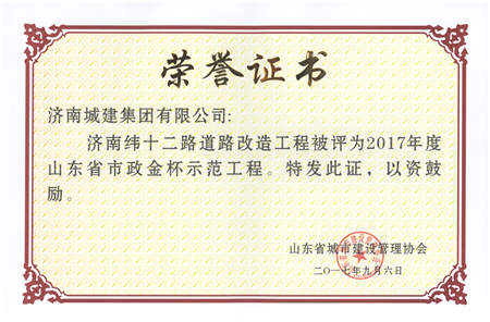 济南纬十二路蹊径刷新工程被评为2017年度年度山东省市政金杯树模工程