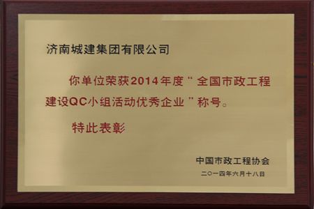 AG8旗舰厅荣获2014年度“天下市政工程建设QC小组运动优异企业”称呼