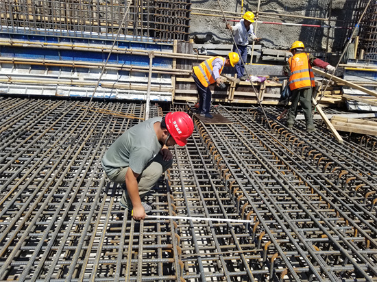8:50 À´µ½µÚ5½Úµ×°å¸Ö½îÊ©¹¤Çø£¬Äóö¾í³ß×ÐϸÕÉÁ¿¸Ö½î°óÔú¼ä¾à¡¢µ×°åºñ¶È¡¢Ä£°å± £»¤²ãºñ¶ÈµÈ¡£ÕâÒ»½Ú±Ã·¿´¦ÓÐÈýÌõ¹ýˮͨµÀ£¬Ò²ÓÐÍâ˦ÖÁÖÎÀíÓ÷¿µÄµØÏÂͨµÀ£¬ÊÇÒ»¸ö¹¤Ðò½ÏÎªÖØ´ó¡¢±ØÐè¼Ó±¶ÖØÊÓµÄÒªº¦Ê©¹¤Î»Öã¬ÐèÒª×ÐϸºË¶Ô¹µ²Û³ß´ç¡¢¸ß¶È¡¢Ô¤Âñ¼þλÖõÈ¡£